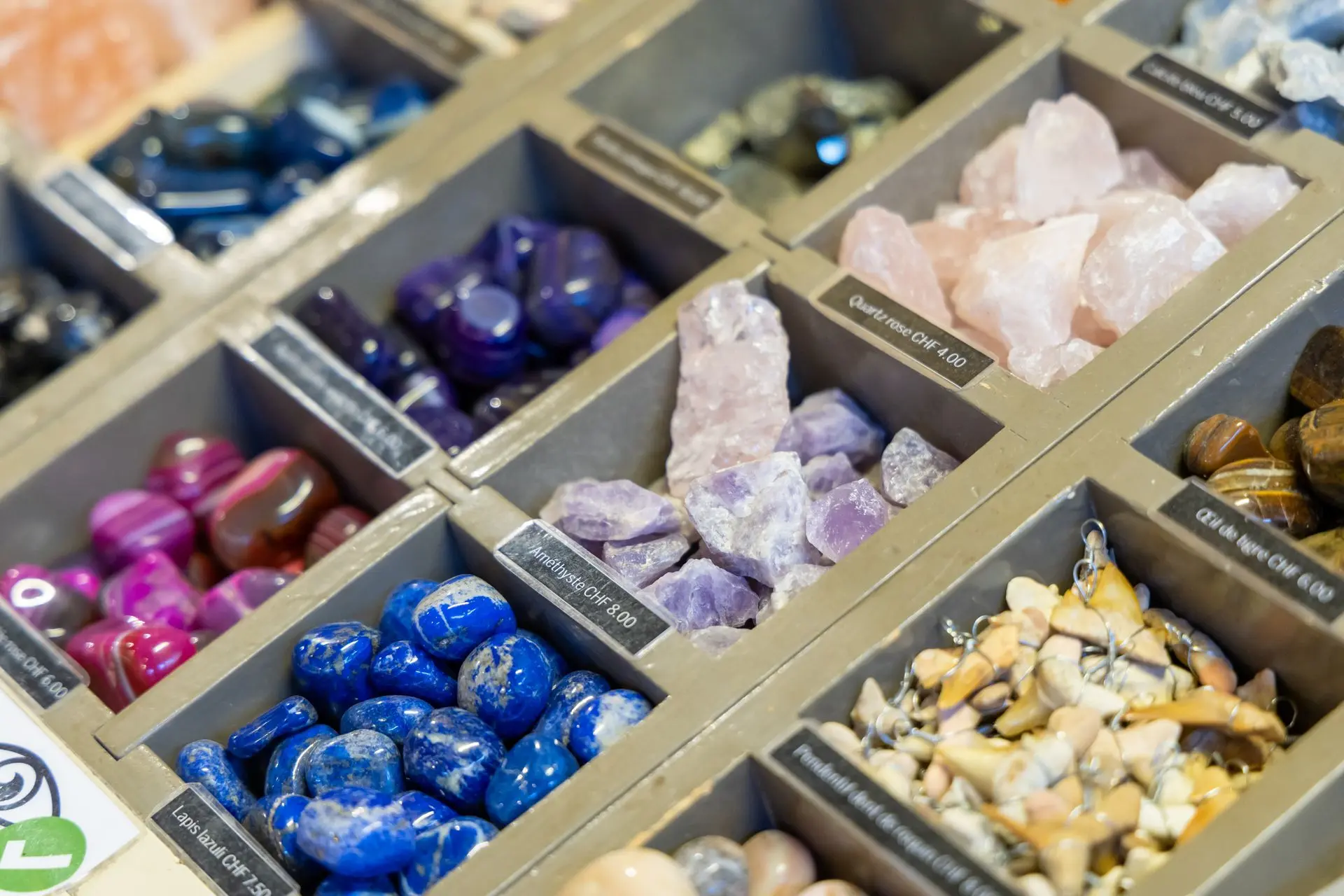 Unser GeschĂ€ft ist auch fĂŒr seine grosse Sammlung von Steinen und Mineralien aus der ganzen Welt bekannt.